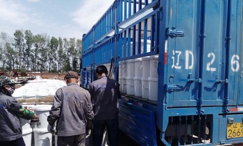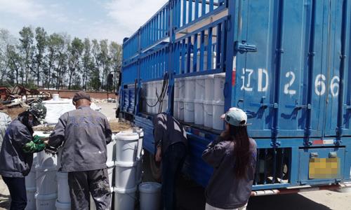 真石漆銷售旺季來臨,12噸撫順真石漆如期交貨!