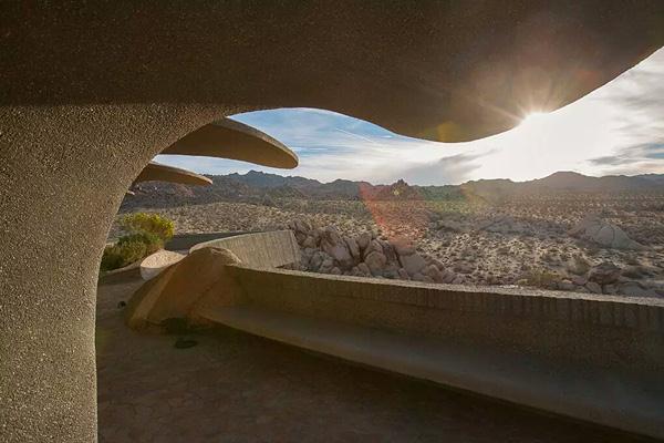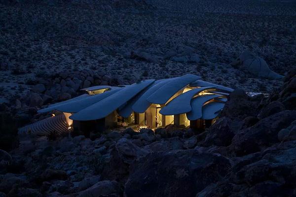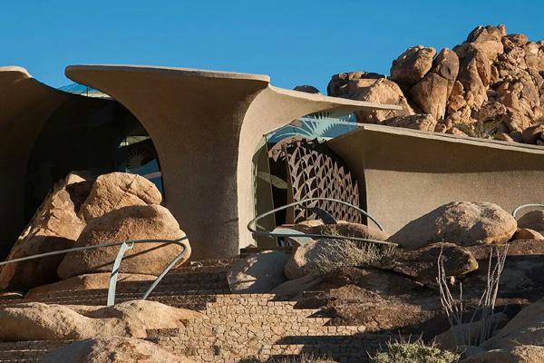 在南加利福尼亞的沙漠中,有一幢將自己偽裝成巖石的建筑。