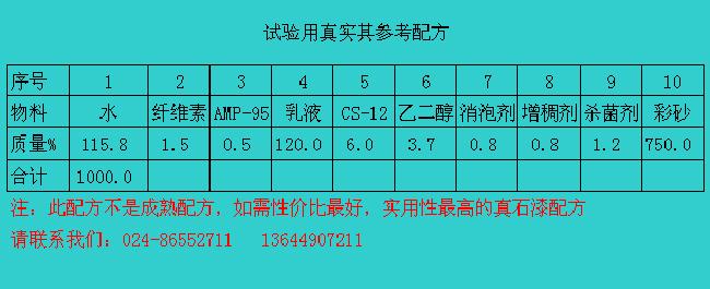 真石漆配方設計時首先應評估原材料性能,選擇耐水耐候性好、玻璃化溫度高的的乳液和增稠體系搭配,不用或少用對漆膜透明度和耐水性影響較大的膨潤土類增稠劑。骨料選擇細粉含量少、吸水量低的優(yōu)質(zhì)彩砂,級配合理,兼顧遮蓋和質(zhì)感效果。配方設計在儲存性、施工性和耐水白性能之間平衡取舍,減少原材料和配方引起的發(fā)花發(fā)白問題。