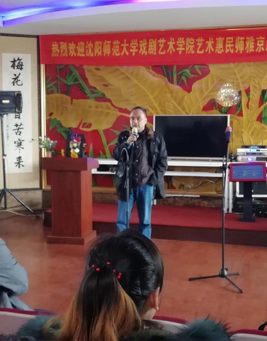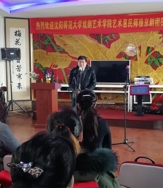 演出前,承德嘉耀科技研究院有限公司董事長、加拿大BQI研究院研究員陳自力先生滿懷激情的發(fā)表了講話,對沈陽師范大學(xué)戲劇藝術(shù)學(xué)院藝術(shù)惠民師雅京劇團(tuán)到企業(yè)進(jìn)行藝術(shù)惠民給與高度贊許,他歡迎和期望沈陽師范大學(xué)戲劇藝術(shù)學(xué)院藝術(shù)惠民師雅京劇團(tuán)能夠到承德演出。