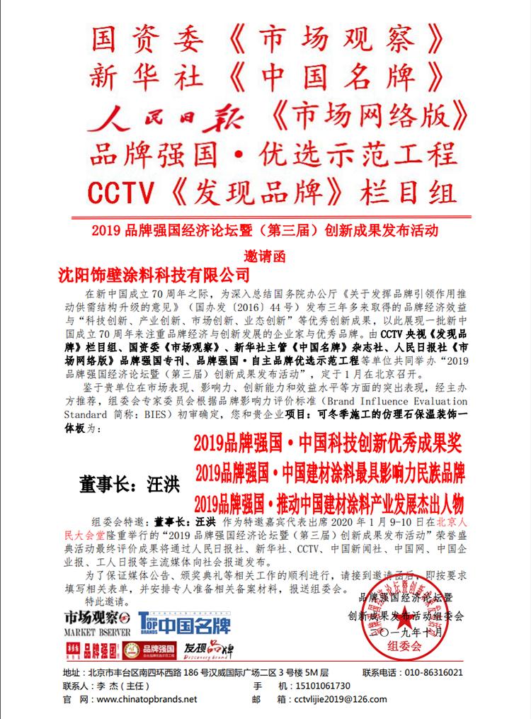 原標(biāo)題:飾壁涂料董事長受邀參加2019品牌強國經(jīng)濟(jì)論壇