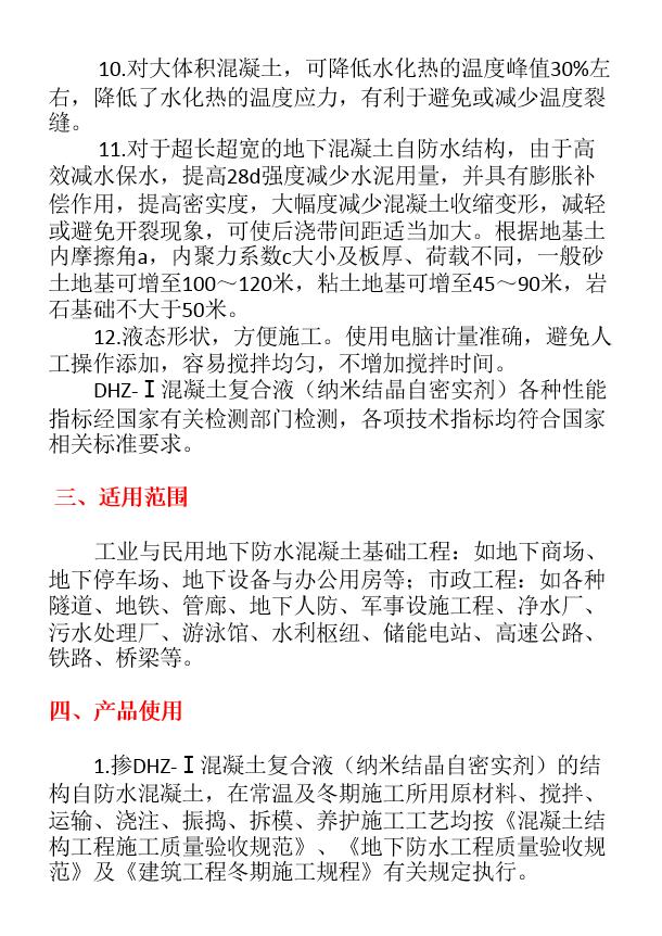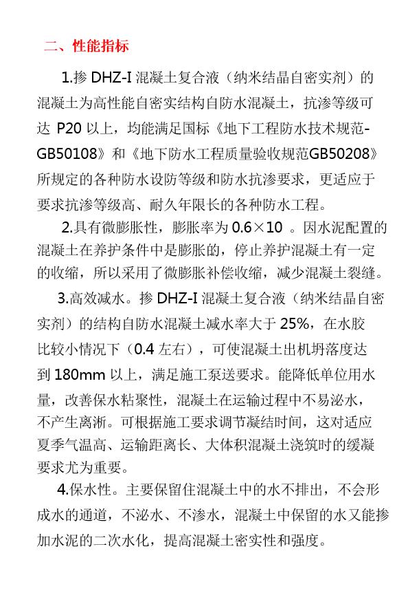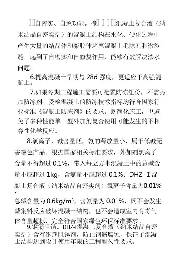 DHZ-I混凝土復(fù)合液(納米結(jié)晶自密實(shí)劑),是目前國(guó)內(nèi)僅有的一種多功能高性能混凝土結(jié)構(gòu)自防水材料。采用DHZ-I混凝土復(fù)合液(納米結(jié)晶自密實(shí)劑)更切合住建部新出臺(tái)的地下室防水不低于結(jié)構(gòu)設(shè)計(jì)工作年限50年的要求,同時(shí)大幅度節(jié)省地下工程防水投資成本50%左右,節(jié)省施工工期30%以上,也免除地下工程后期滲漏水維修成本,用戶可高枕無憂。產(chǎn)品為無毒液體,不污染環(huán)境,對(duì)人體無害,屬于綠色建材建筑產(chǎn)品,產(chǎn)品獲得國(guó)家發(fā)明專利,多次榮獲國(guó)內(nèi)外發(fā)明大獎(jiǎng)。