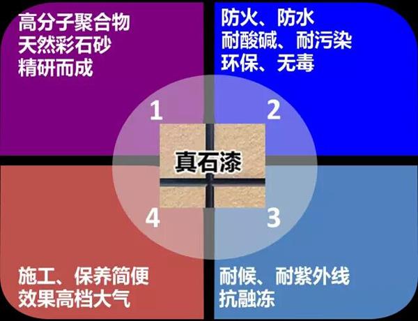 真石漆主要由高分子聚合物、天然彩石砂及相關助劑制成,干結固化后堅硬如石,看起來像天然真石一樣。巖片真石漆也叫仿花崗石漆、花崗巖涂料,是不含任何溶劑型物質的砂壁狀建筑涂料,是傳統天然真石漆的升級換代品種。