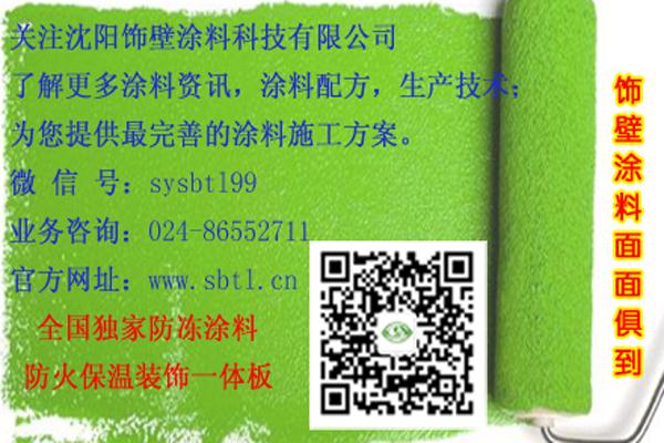 關注飾壁涂料微信公眾號:sysbtl99 更多涂料資訊,配方,生產技術,施工工藝;為您提供最完善的施工解決方案!全國獨家防凍涂料 防火保溫裝飾一體板