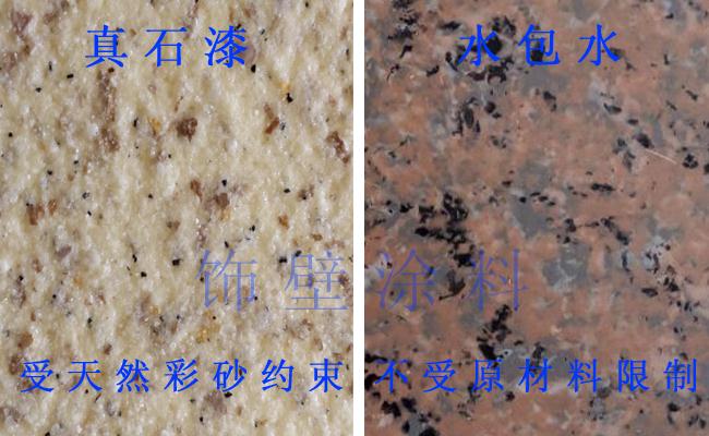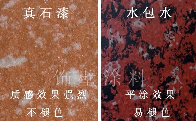 真石漆質感效果強烈,不褪色;水包水涂料平涂的施工效果,質感效果不理想,并且易褪色。