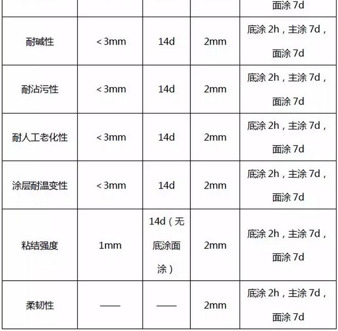 5、增加主涂吸水量、涂層體系柔韌性、凍融循環粘結強度項目;