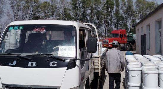 等待裝車(chē)的真石漆成品