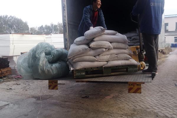 20噸粘接砂漿發貨大連,保溫加真石漆工程開工!